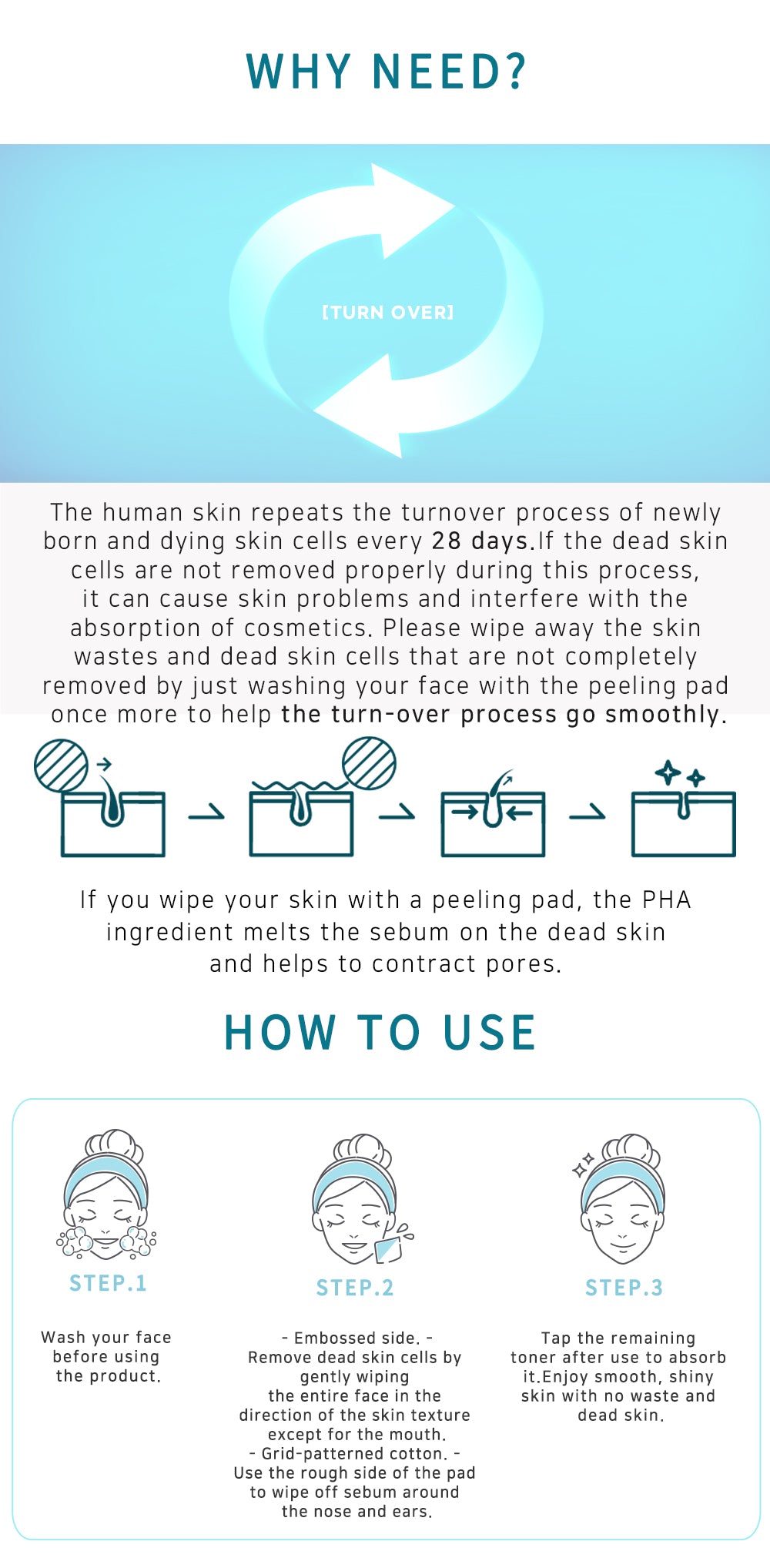 - Use the embossed side to wipe gently along the skin texture, avoiding the eye and mouth areas.