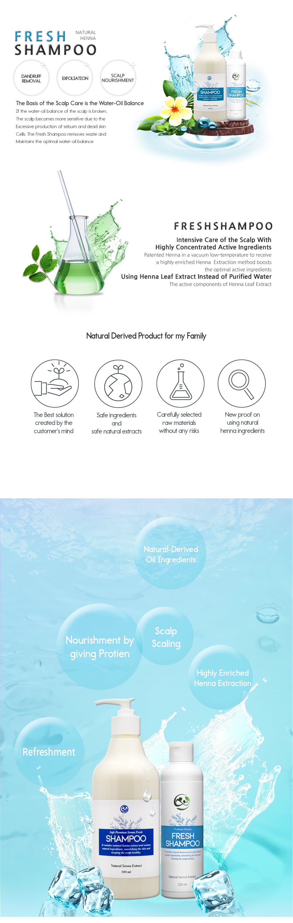 Experience premium scalp care with Fresh Natural Henna Shampoo, formulated with natural henna extract, zinc pyrithione, and 9 specialized botanical extracts to help soothe sensitive scalp, reduce dandruff, and maintain a healthy water–oil balance.